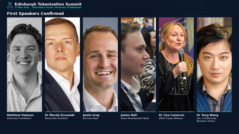 The Edinburgh Tokenisation Summit brings together leaders from financial services, asset management, law, and technology for a full day of talks and discussion on 27 May 2026. The event is built around a practical question: how do we move real-world assets on-chain in the UK? Speakers from major banks, global asset managers, regulators, and blockchain infrastructure teams will share what works, what does not, and what comes next. The summit targets approximately 180 attendees from organisations that are actively building or evaluating tokenisation strategies.