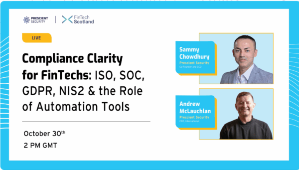 FinTechs today face mounting pressure from regulators, investors, and enterprise customers to prove they can keep data secure and processes compliant. But choosing between frameworks like ISO 27001, SOC 2, PCI DSS and GDPR can feel like alphabet soup: especially when deciding which one to pursue, when, and why. In this session hosted with the FinTech Scotland community, experts from Prescient Security will break down: The differences and overlaps between ISO, SOC 2, DORA, NIS2 and GDPR, How fintechs can choose the right compliance path at different growth stages, The role of compliance automation and how your audit journey will look like